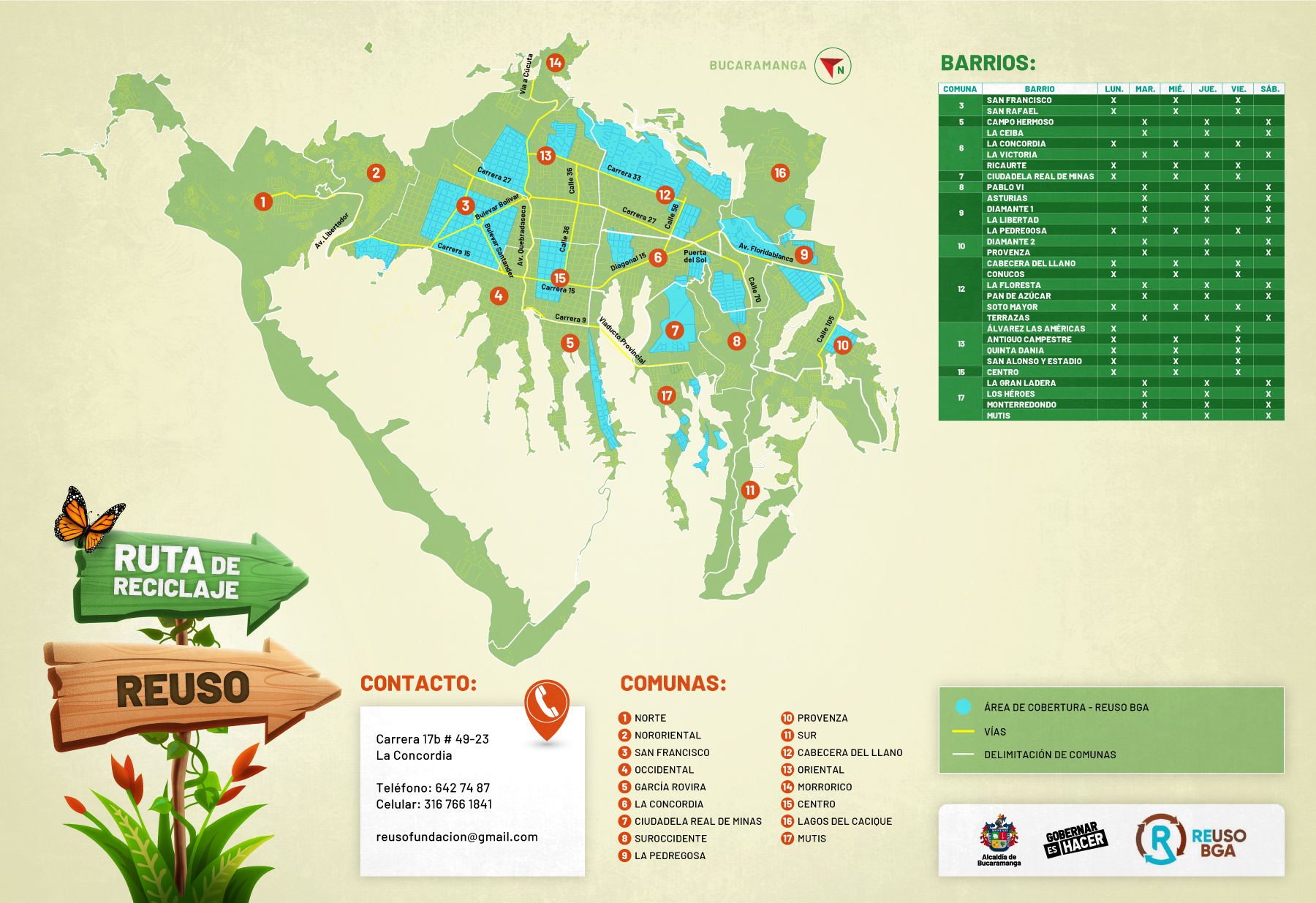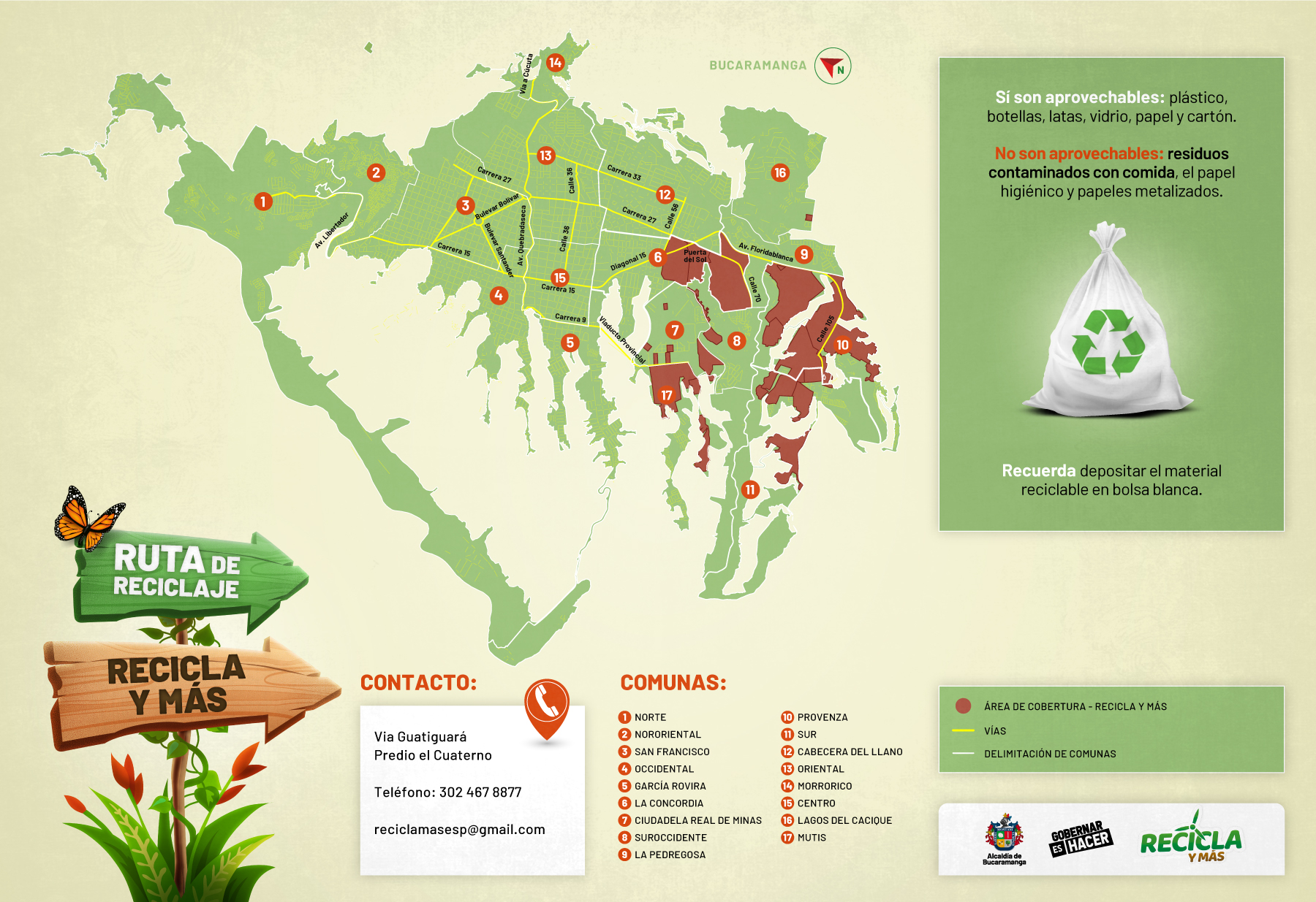 Mapa general del reciclaje en Bucaramanga. Infografía: Secretaría de Salud y Ambiente de Bucaramanga.