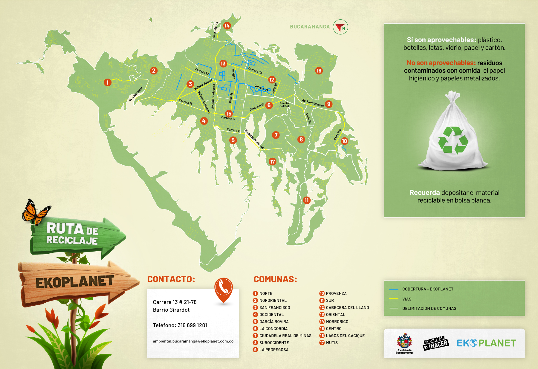 En Bucaramanga tenemos 9 entidades que se encargan de recorrer la ciudad recogiendo el reciclaje que generas y que ayuda a reducir las toneladas de residuos que producimos a diario.