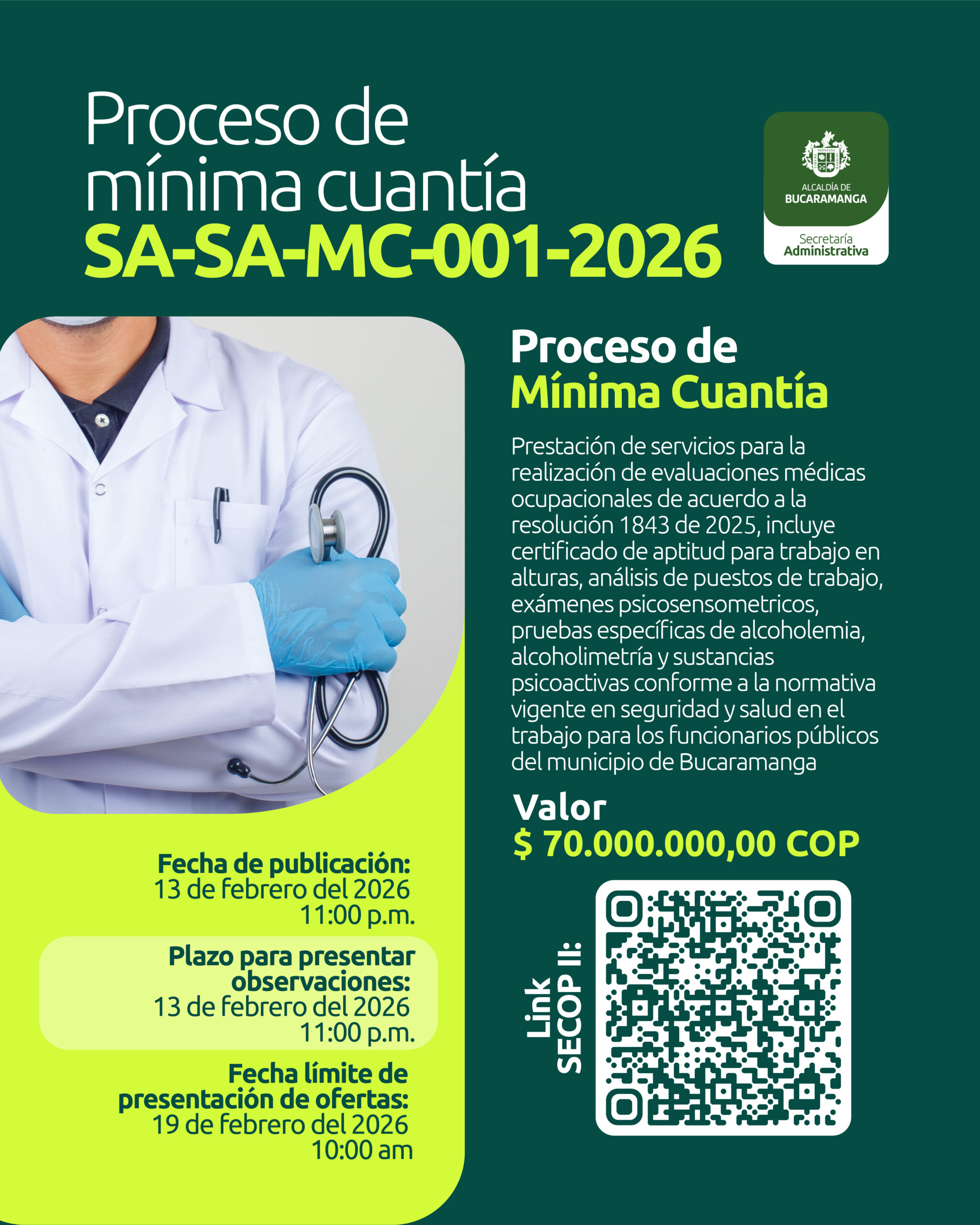- Proceso de Selección de Mínima Cuantía – Compraventa de papelería para la Secretaría de Desarrollo Social del Municipio de Bucaramanga